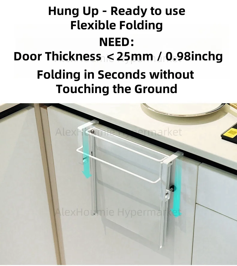 3.The Fold down Tray Can Be Directly Hung on Drawers or Cabinet Doors Under the Countertop for Use, And Can Be Folded Without Taking up Space. No Need to Drill Holes to Preserve the Integrity of the Cabinet Door.